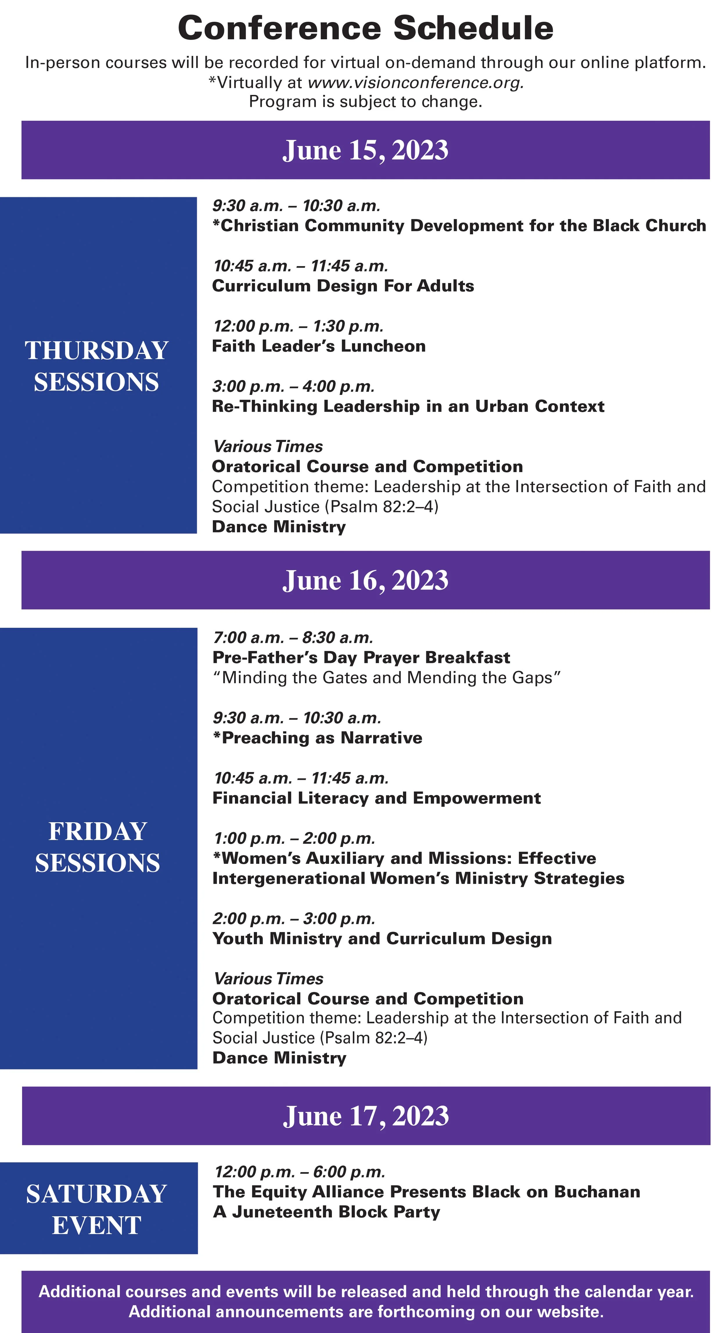 After more than a century of impactful fellowship, spiritual growth, and community engagement, the Vision Conference, formerly known as the National Baptist Congress. hosted by R.H. Boyd, is on hiatus. Over the years, this esteemed event has served as a beacon of unity and empowerment for our community, fostering connections and promoting the values that define our shared faith.